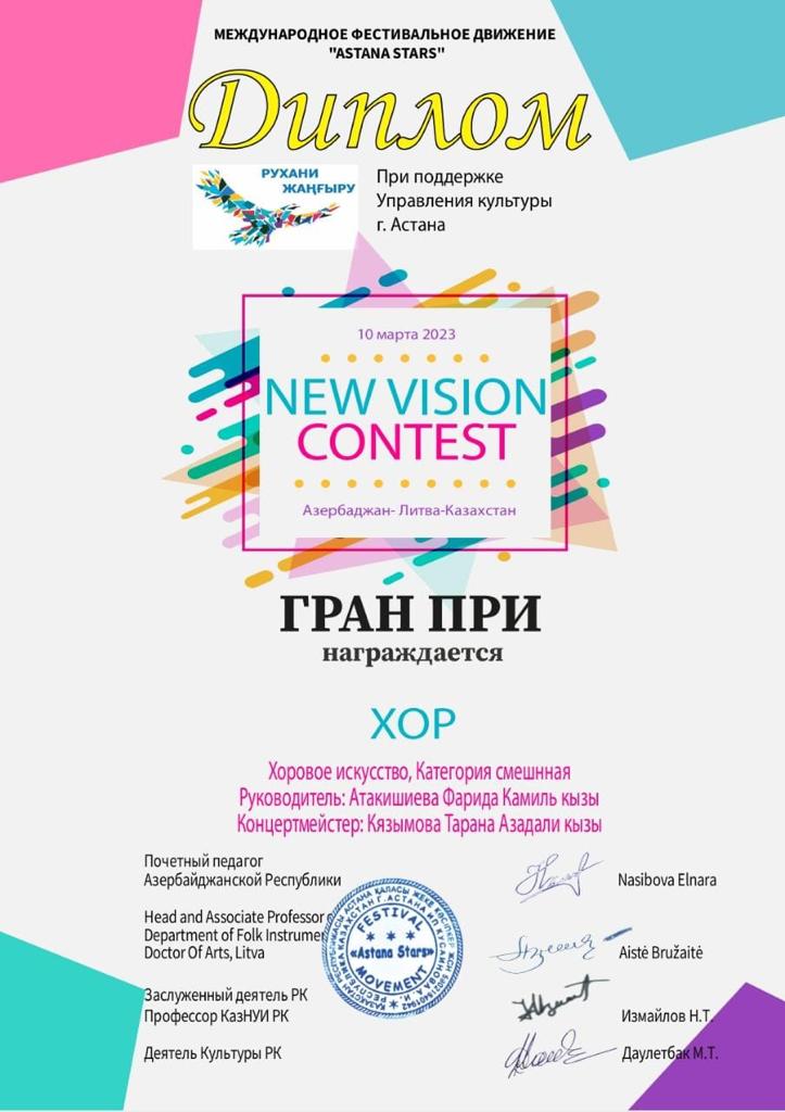 Sumqayıt Regional Mədəniyyət İdarəsinə tabeli Abşeron rayon Ceyranbatan qəsəbə Uşaq İncəsənət Məktəbinin Xor kollektivi Astana festival hərəkatının rəhbərliyi ilə onlayn keçirilən "New Vision Contest" III Beynəlxalq Vokal-İnstrumental müsabiqədə iştirak edərək, "Qran Pri" mükafatına layiq görülüblər. Şagirdləri müsabiqəyə xormeystr Fəridə Atakişiyeva hazırlayıb. Onları konsertmeyster Təranə Kazımova müşayiət edib.